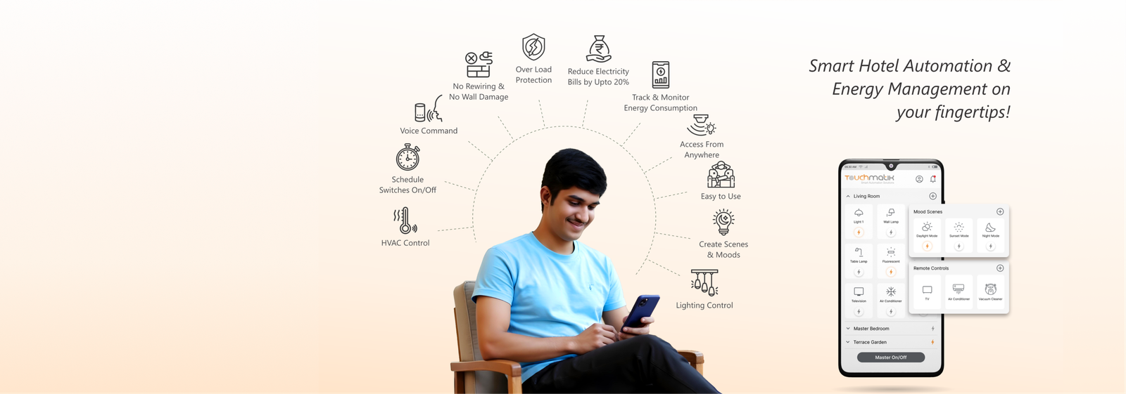Elegant smart switches built to enhance guest comfort and streamline hotel services effortlessly.