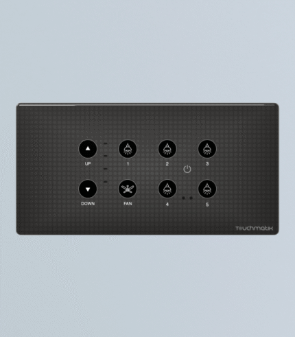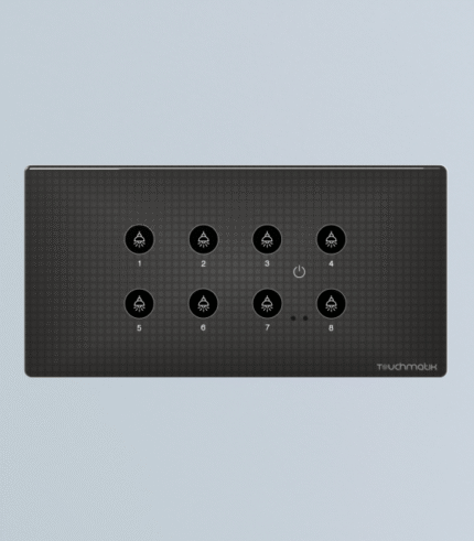 Fitment Box: 4MGlass size :-Length: 172 mm, Width: 86 mmTwo output with 2 dimmable motor control, open and close curtain motor load, socket 6Amp or 16 Amp, smart capacitive touch, proxy wakeup for switches, WiFi 2.4 Ghz and RF remote.Touchmatik uses Norisys socket in this panel.