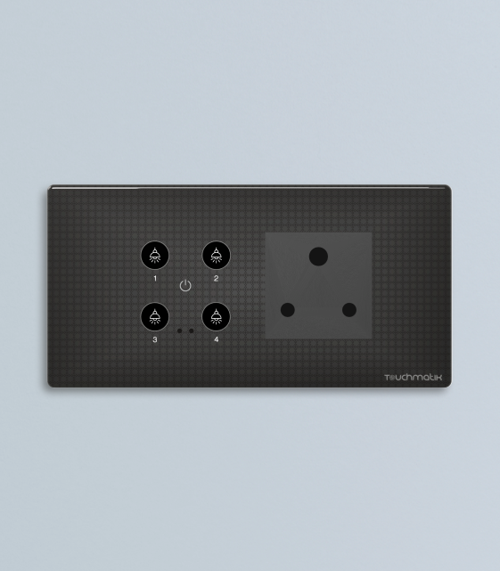 Emerald(4M) 4 Switch + 1Socket + Master with Round Glass, Proximity Sensor, Wi-Fi and RF. Supports Air conditioning, Led lamp and 230Volt AC 16Amp for smooth daily use.